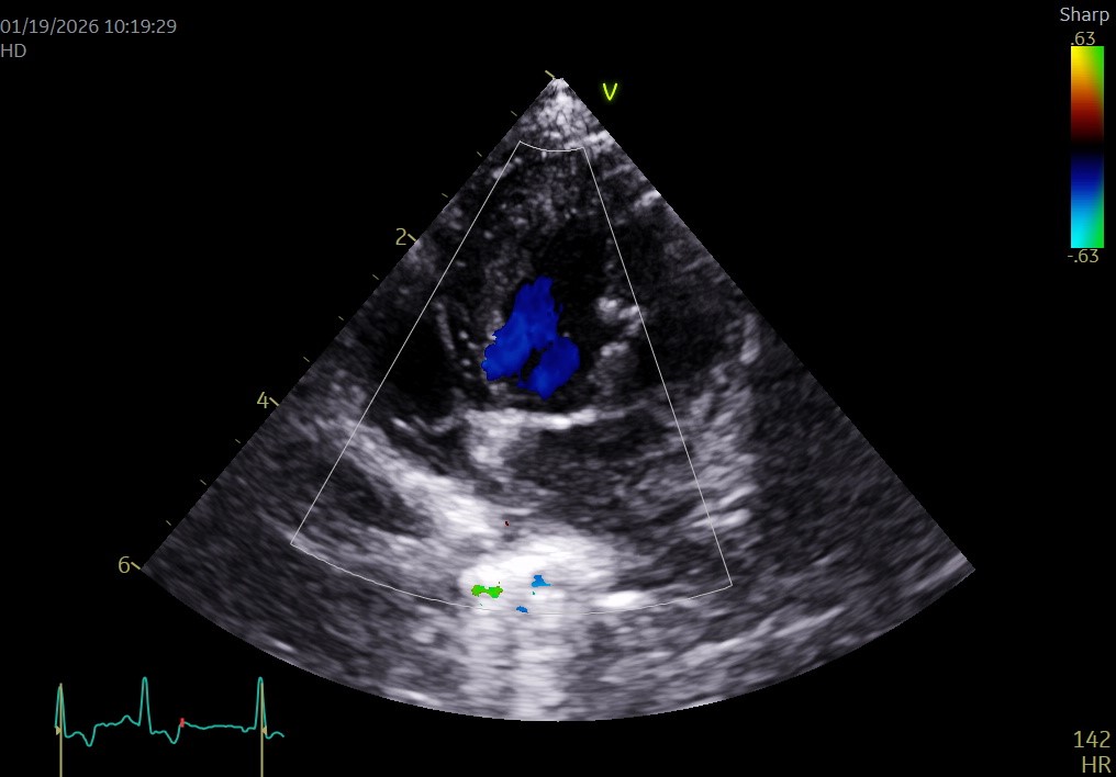 ▲心エコー(左心尖長軸四腔断面像)(術前)