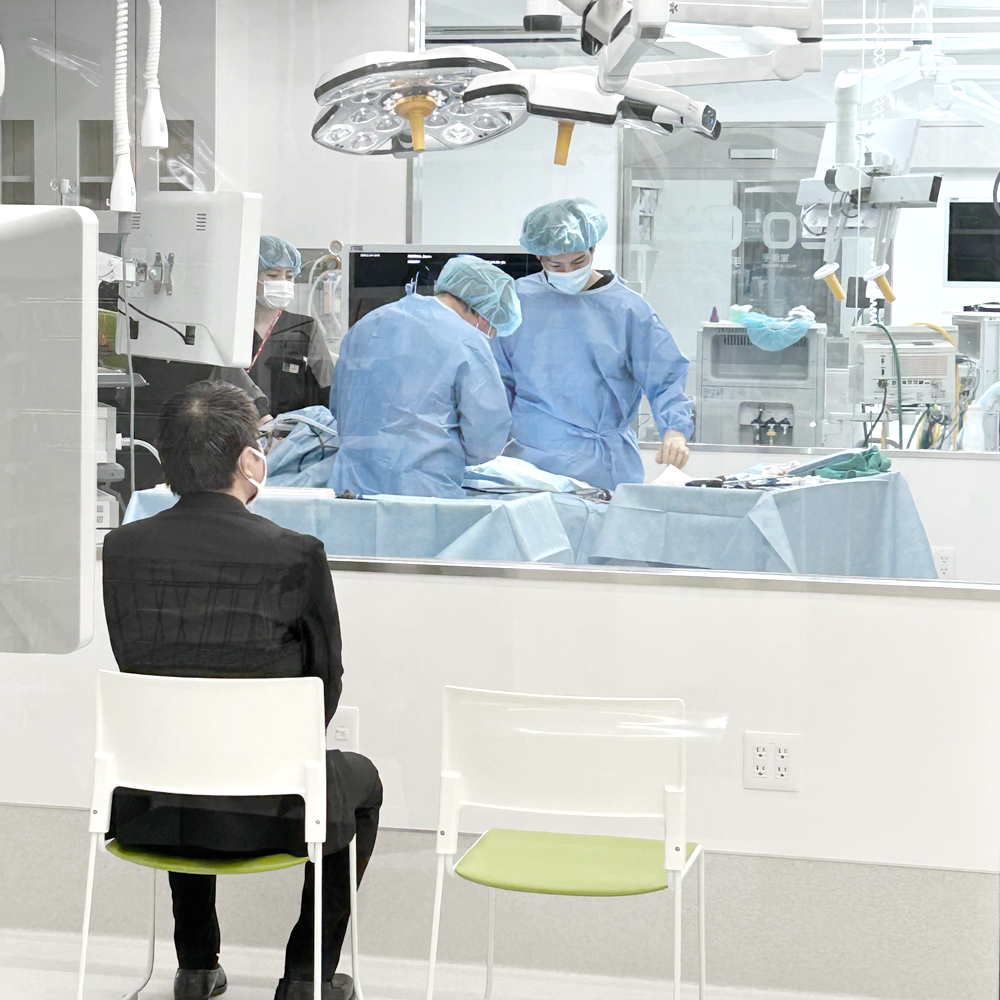 当院では、感染管理に配慮した見学室(ガラス越し)から手術を見守っていただける「飼い主様立会手術」を開始しました。